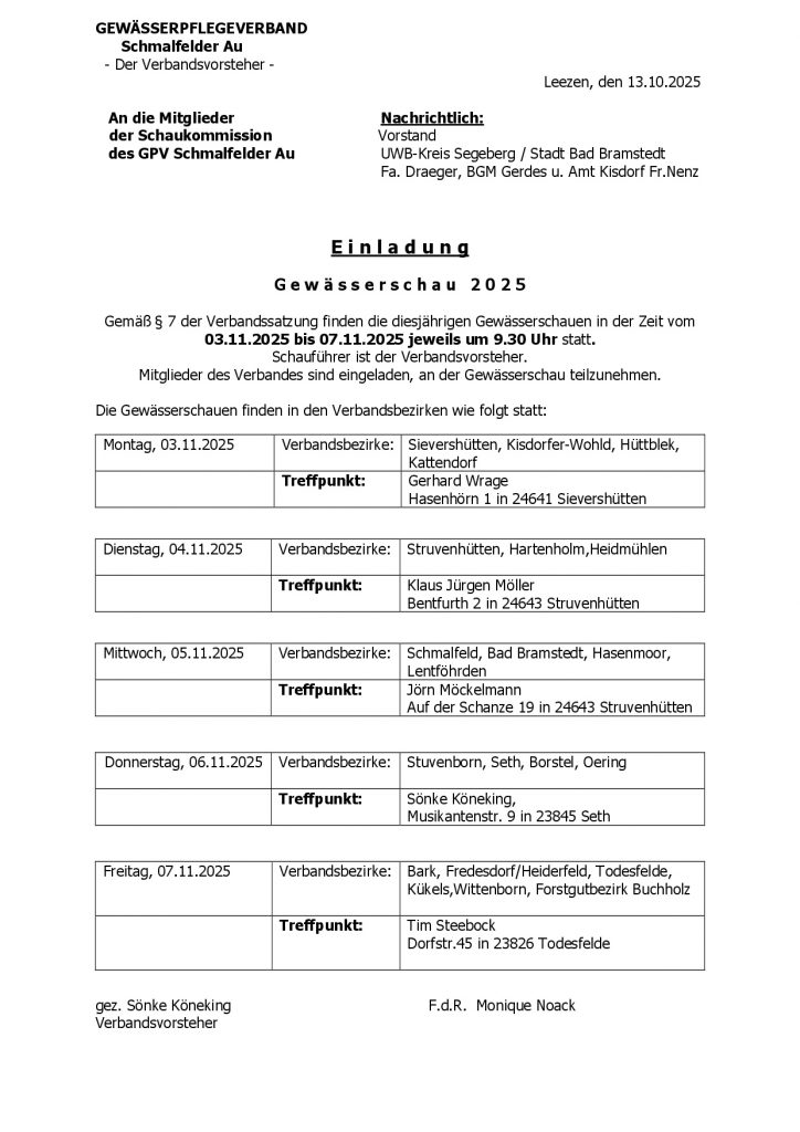 Der Gewässerpflegeverband Schmalfelder Au (gegründet 1965) als größter Verband im Kreis Segeberg hat sich als erster Verband mit dem Themenbereich der naturnahen Umgestaltung von Fließgewässern beschäftigt.